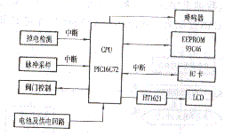 采用Microchip公司新推出的單片機PIC16C72,以實現(xiàn)水表的智能化,該水表具有自動計數(shù)、自動供水斷水、自動保存數(shù)據(jù)、自動報警、限制日用水量等功能。